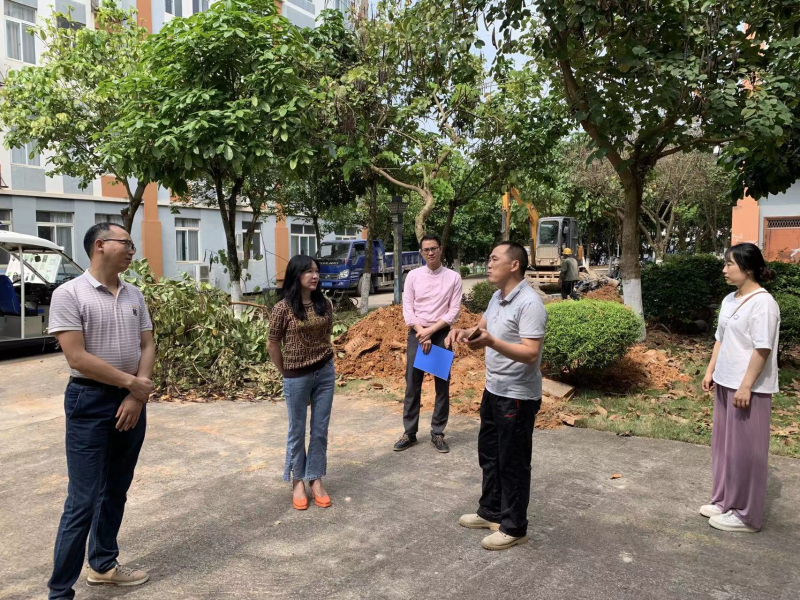 5月3日上午分校副校长马华菊带队检查启智楼(8号教学楼)周边环境施工