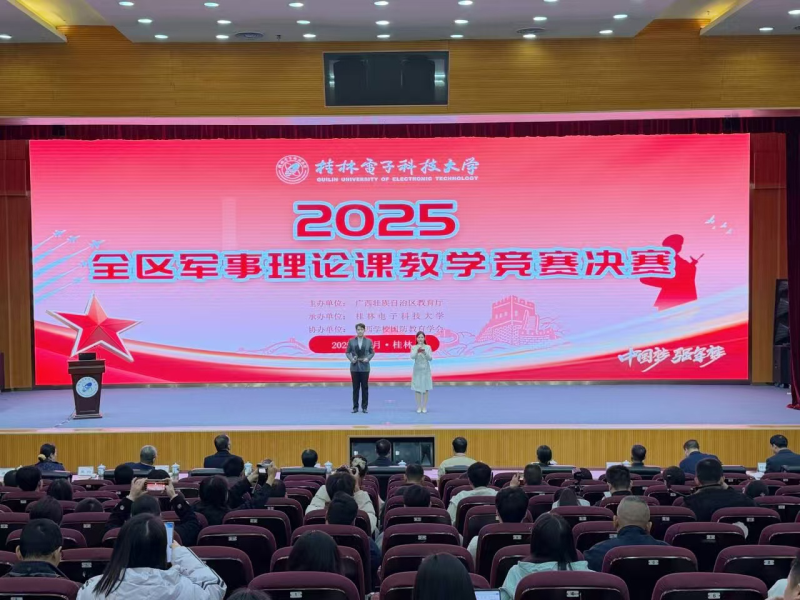 12月16日上午,由自治区教育厅主办、桂林电子科技大学承办、广西学校国防教育学会协办的2025年全区军事理论课教学竞赛决赛在桂林电子科技大学正式拉开帷幕。自治区教育厅体育卫生艺术教育处、职业教育与成人教育处处长万锋锋,学校党委副书记聂慧等领导出席开幕式,与来自全区各校的40名参赛选手、100余名观摩教师齐聚一堂,共赴这场国防教育教学的盛会。
